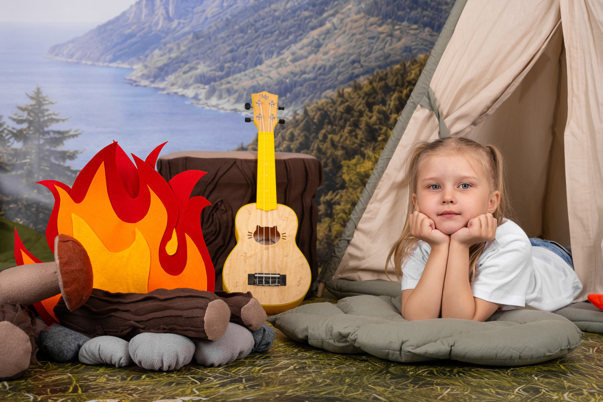 Мы создаём атмосферу уютного похода прямо в детском саду — с костром, палаткой, горами и весёлыми моментами, которые дети обожают 💛